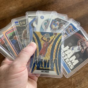 Joel Embiid Lot w/SSP (#’ed /99) Reactive Yellow Prizm, Pack of 9 Basketball Cards