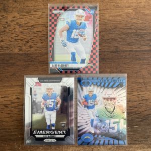 Ladd McConkey RCs Lot w/SSP Red & Black Checkerboard Rookie, Pack of 3 Football Cards (inv1)