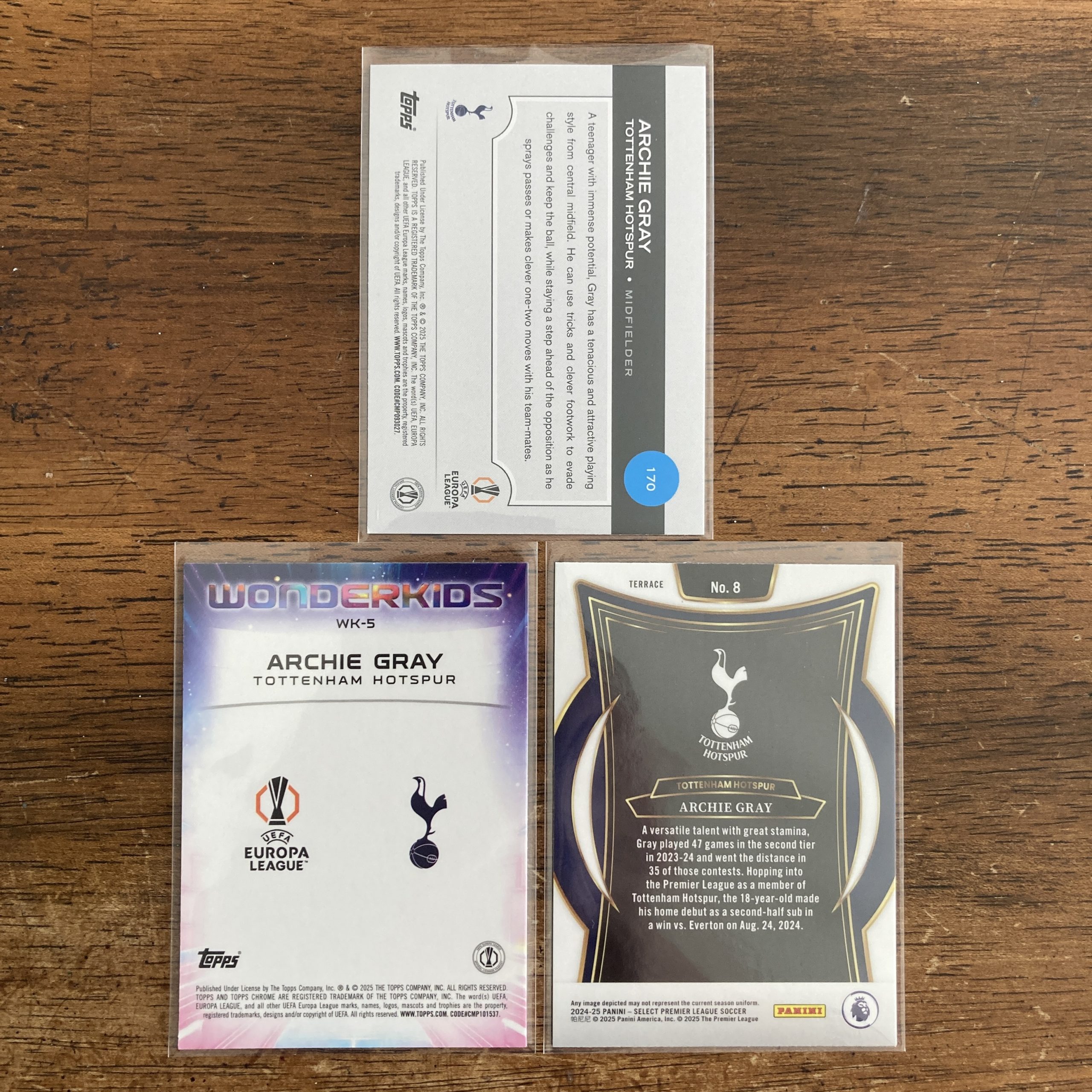 Tags: archie gray, bundle, collection, epl, holofoil, insert, league, lot, pack, panini, parallel, rc, refractor, rookie, select, short print, Soccer, sp, topps, tottenham hotspur, UEFA