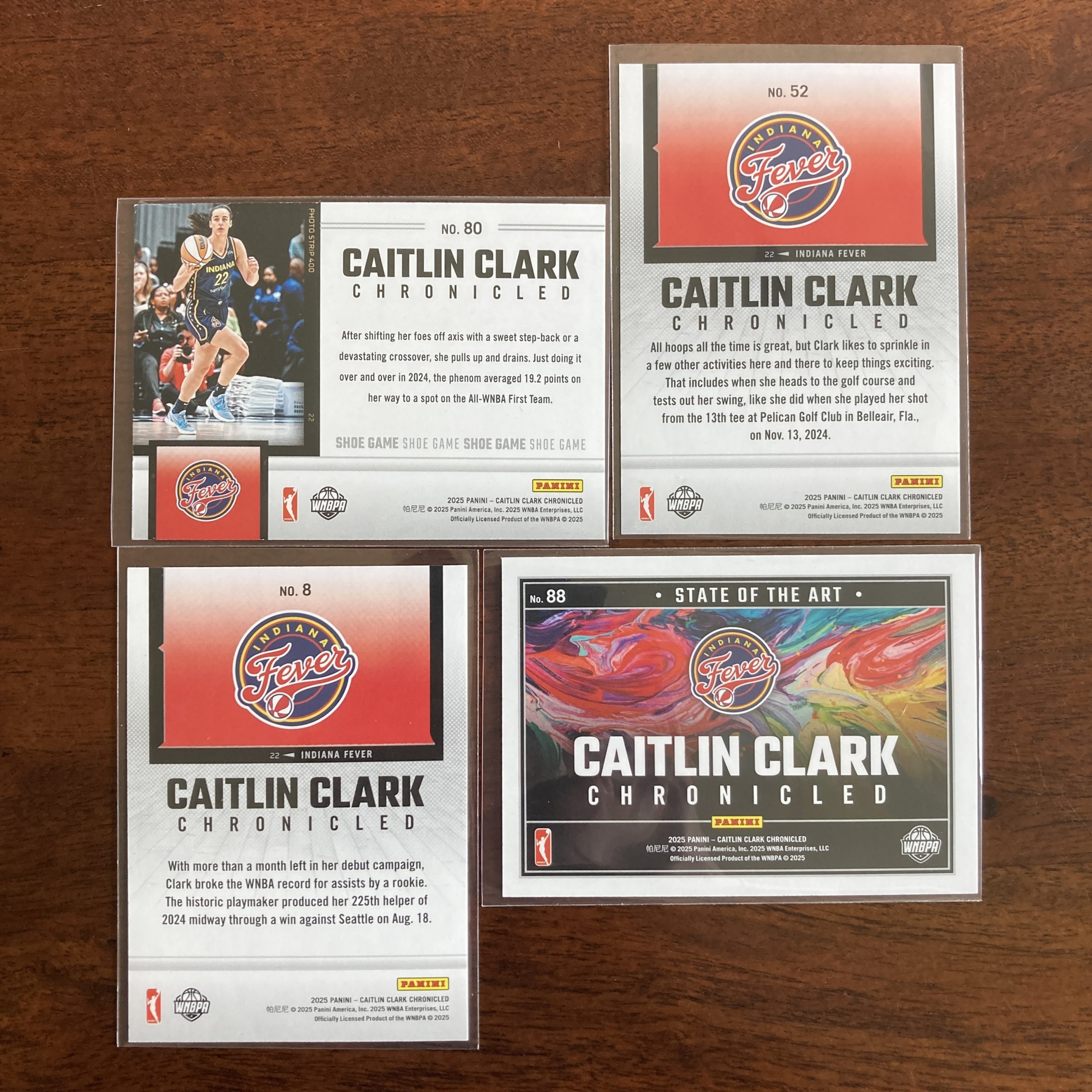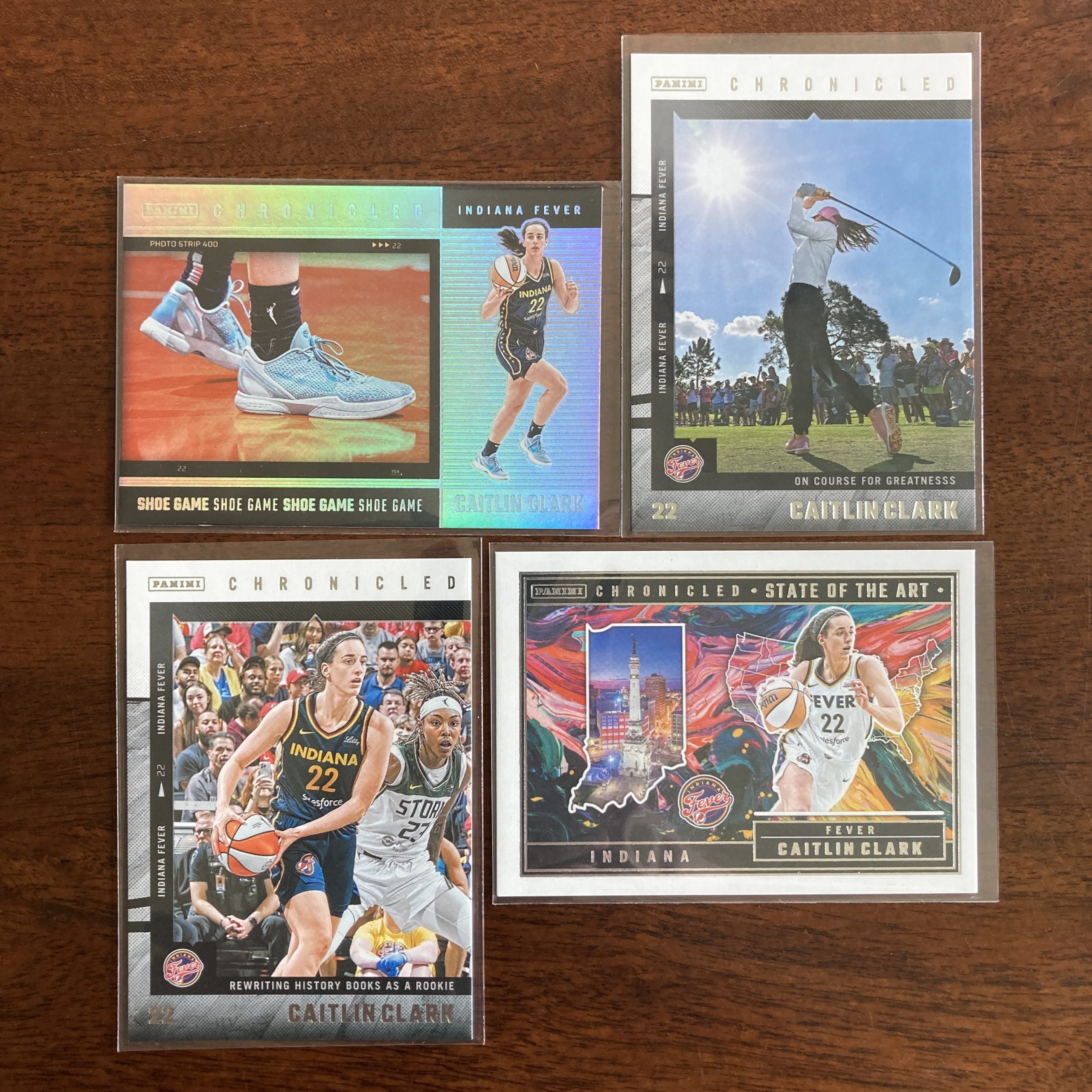 Caitlin Clark Pack w/SP Holofoil Shoe Game, Lot of 4 Basketball Cards, Panini Chronicled (cc8)