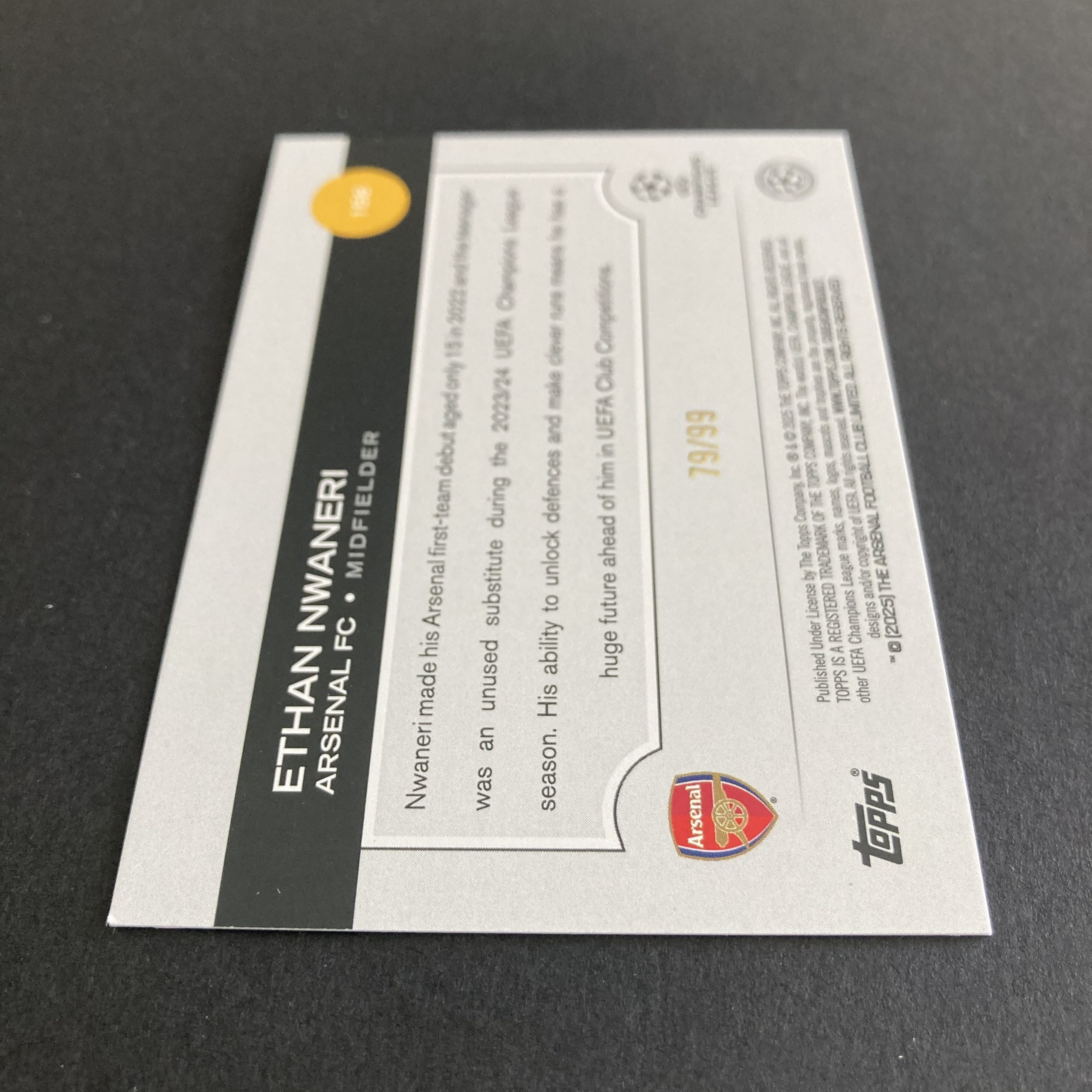 Tags: arsenal fc, club competitions, ethan nwaneri, green, parallel, rc, rookie, serial numbered, short print, single, Soccer, sp, topps, ucc, UEFA