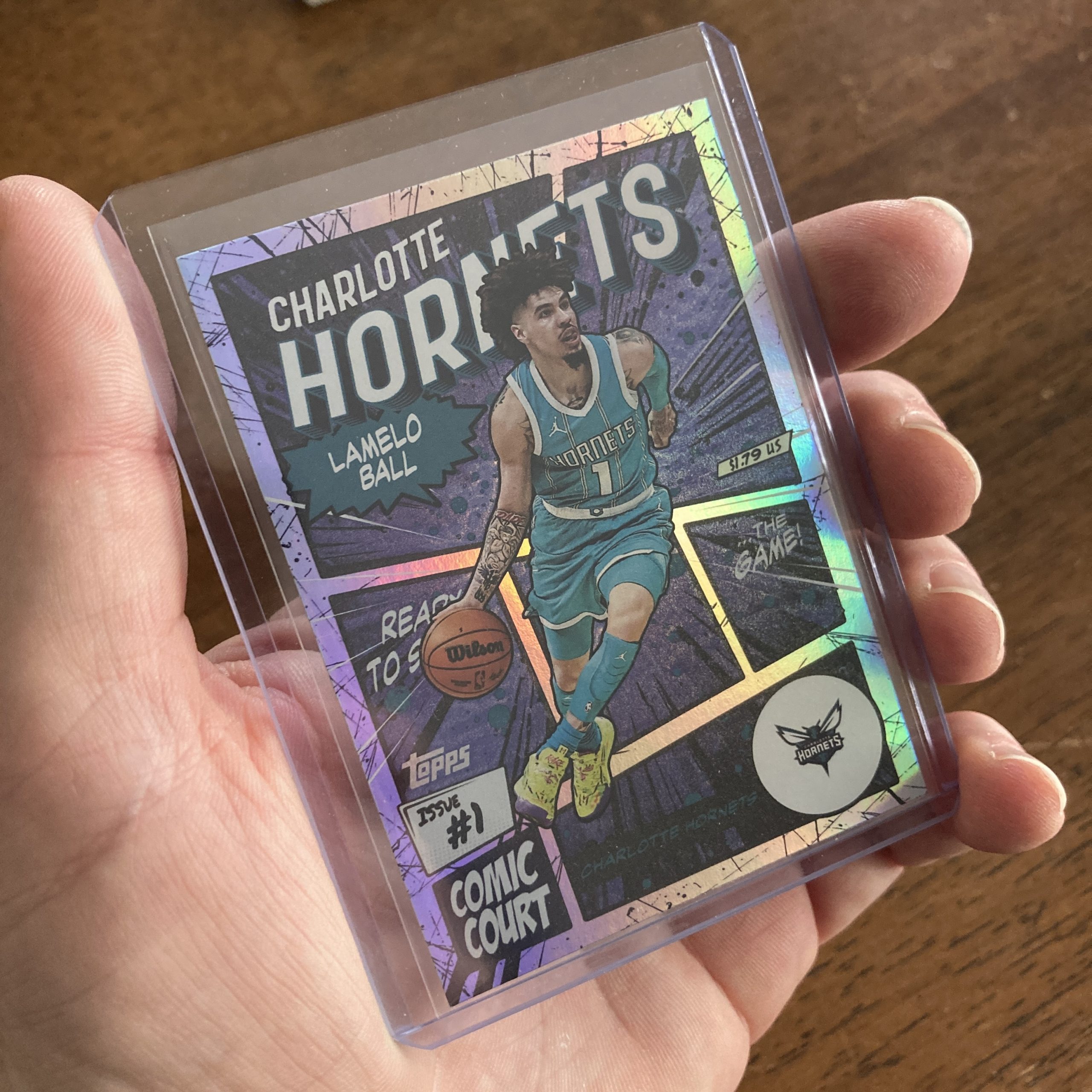 Tags: Basketball, case hit, Charlotte, comic court, foil, holo, holofoil, Hornets, insert, LaMelo Ball, single, sp, ssp, super short print, topps