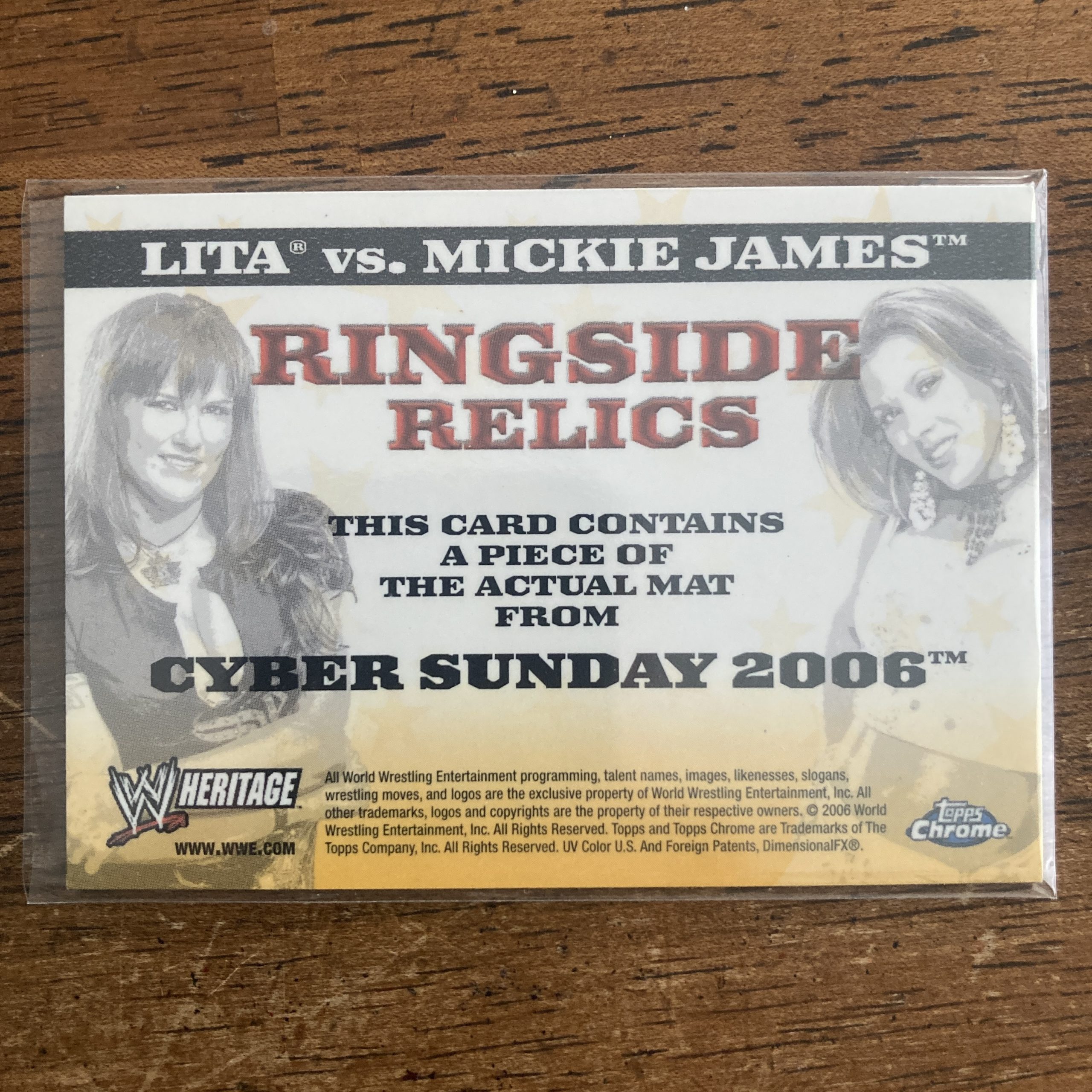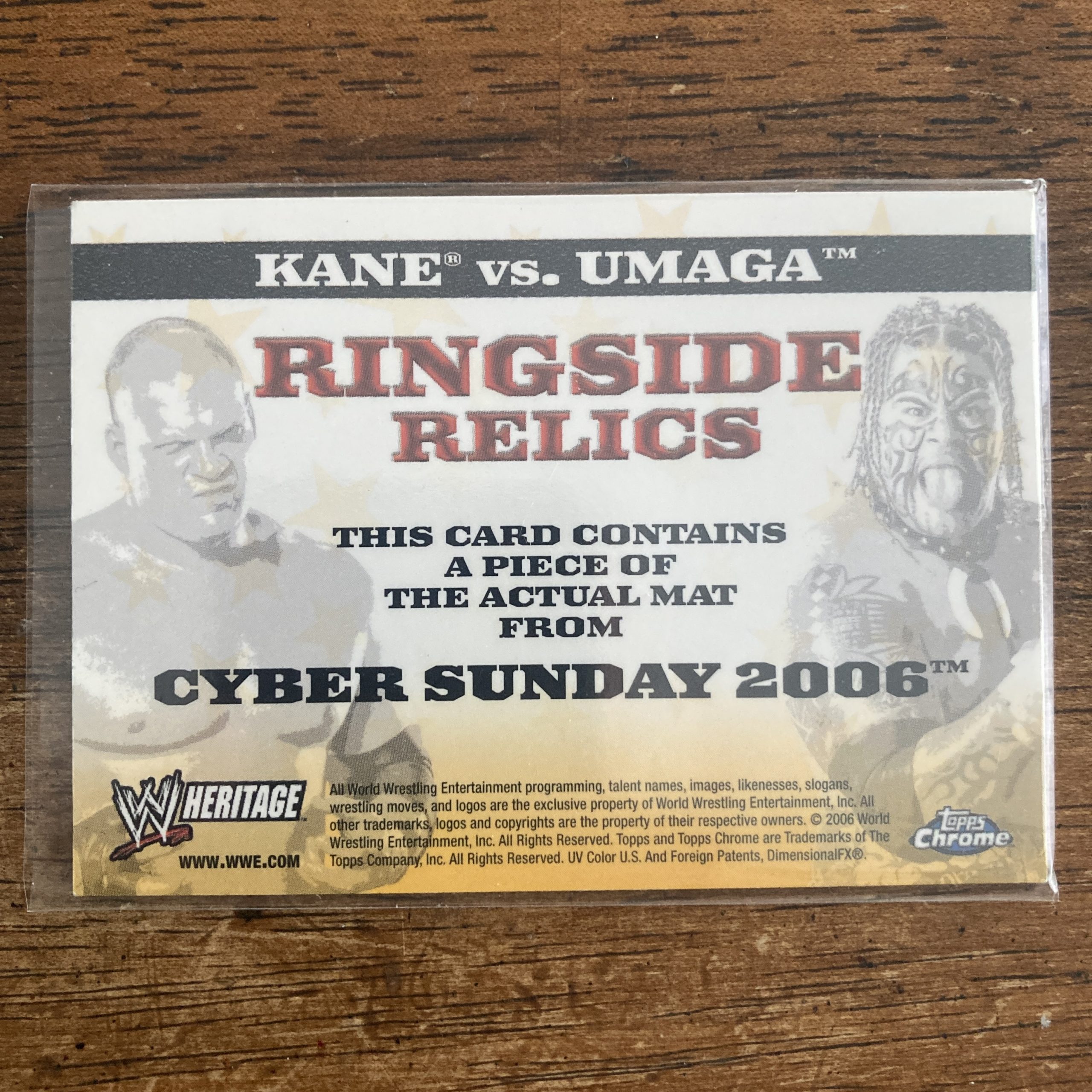 Tags: bundle, chrome, collection, cyber sunday 2006, event-used mat, fighter, Fighting, game used, heritage, insert, Kane, Lita, lot, mem, memorabilia, Mickie James, pack, patch, relic, ringside relics, superstar, swatch, topps, Umaga, wrestler, Wrestling, WWE
