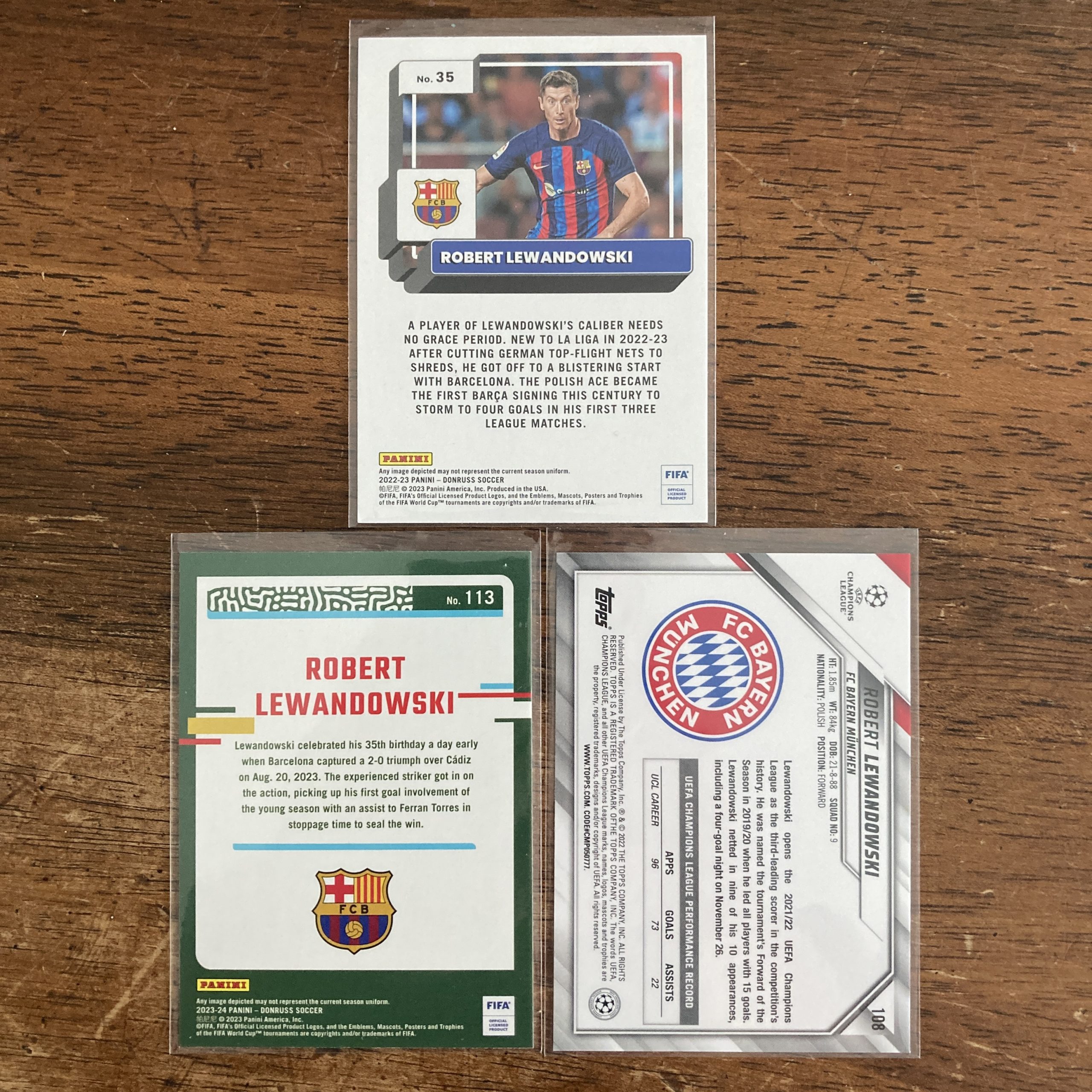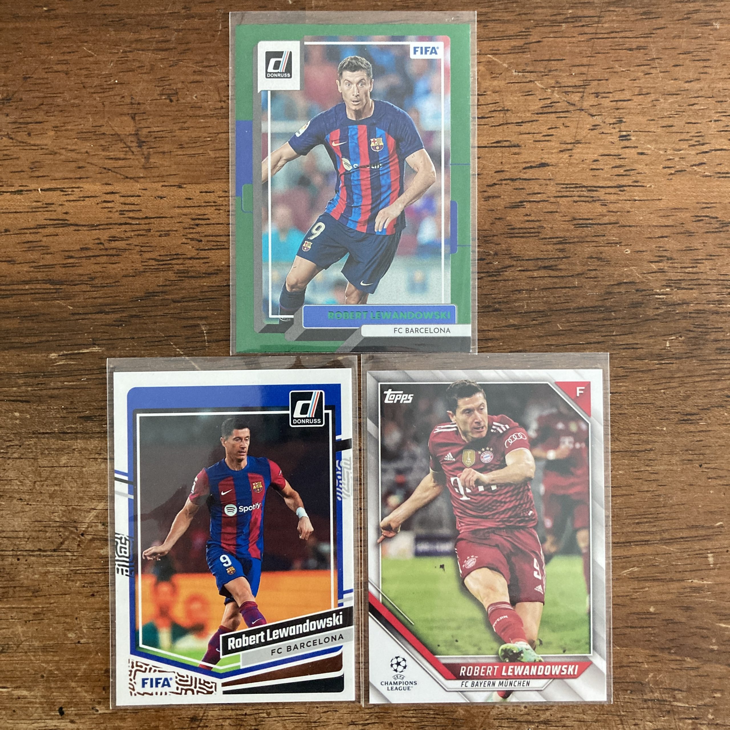 Robert Lewandowski Pack w/SP Green Glitter Foil, Lot of 3 Soccer Cards (inv2)