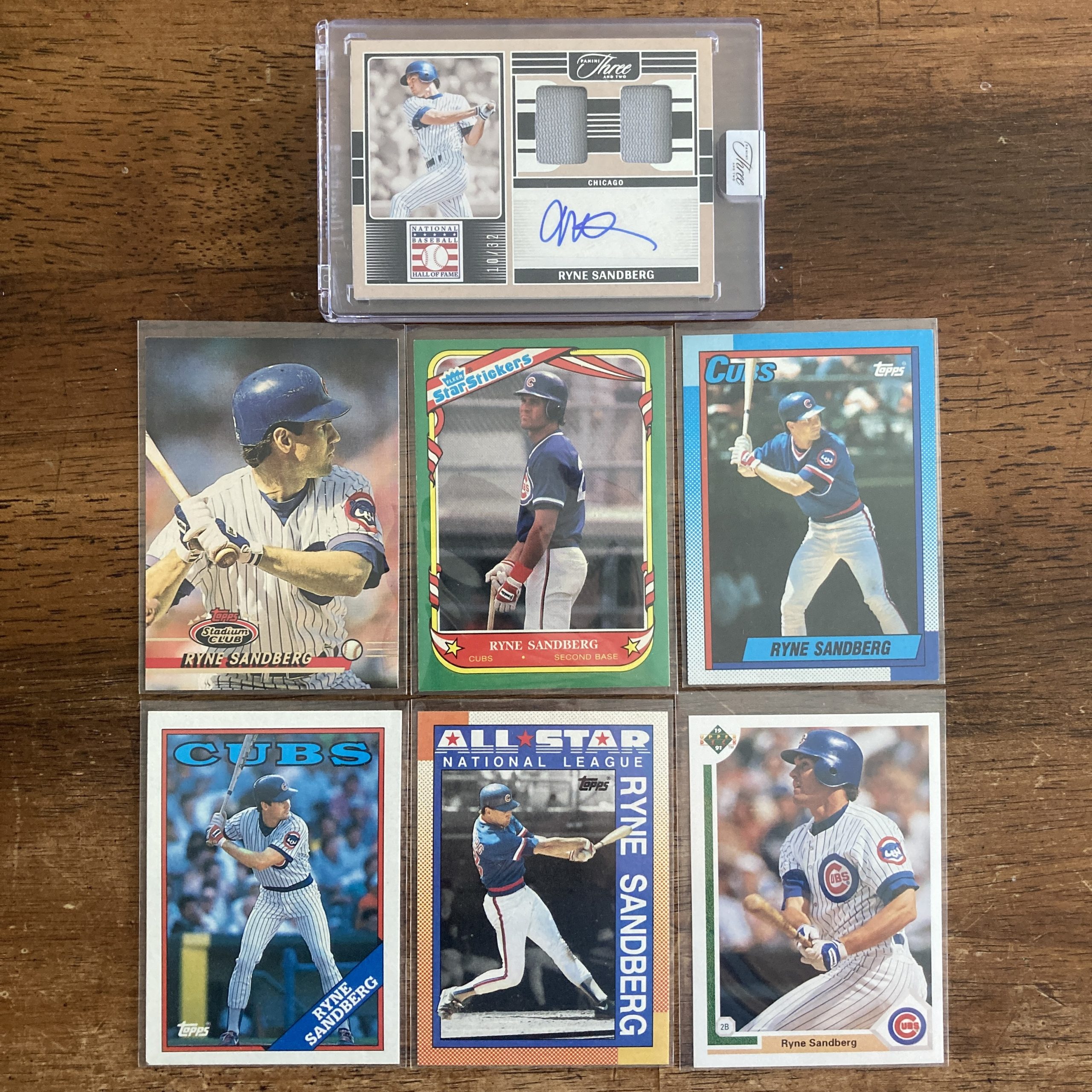 Ryne Sandberg Lot w/SSP Auto Relic and 6 Vintage 80s-90s Baseball Cards, Autograph
