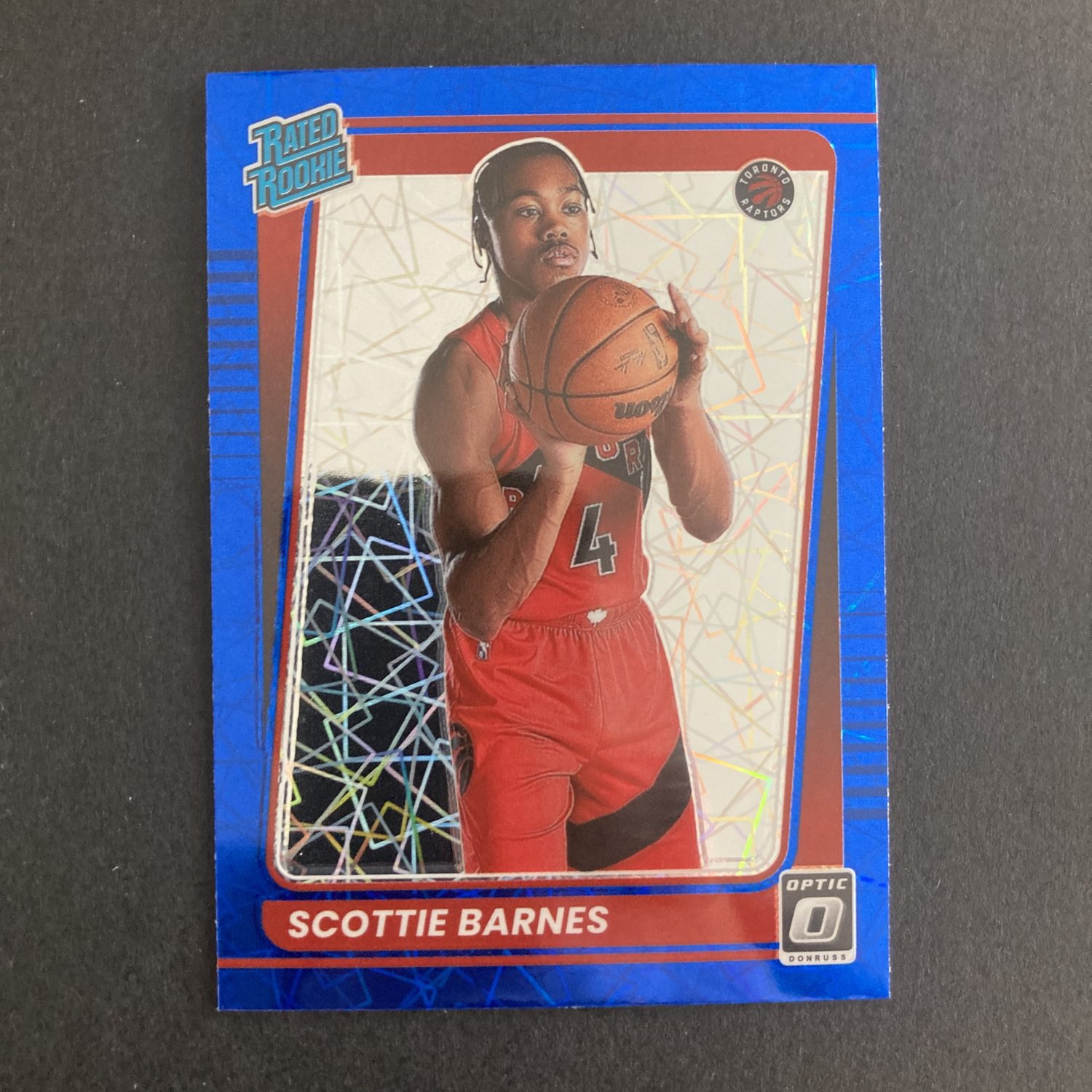 Curated pack of five different Scottie Barnes basketball cards including a Panini Donruss Optic Rated Rookie Blue Velocity Prizm parallel RC and a Select Blue Cracked Ice Prizm parallel card. Nice little instant collection bundle of cards for a basketball fan! You will receive all of the exact cards pictured. Each card will be in a penny sleeve and top loader and they will come in a small pack (team bag) with cover graphic as pictured. Will be shipped very well protected!