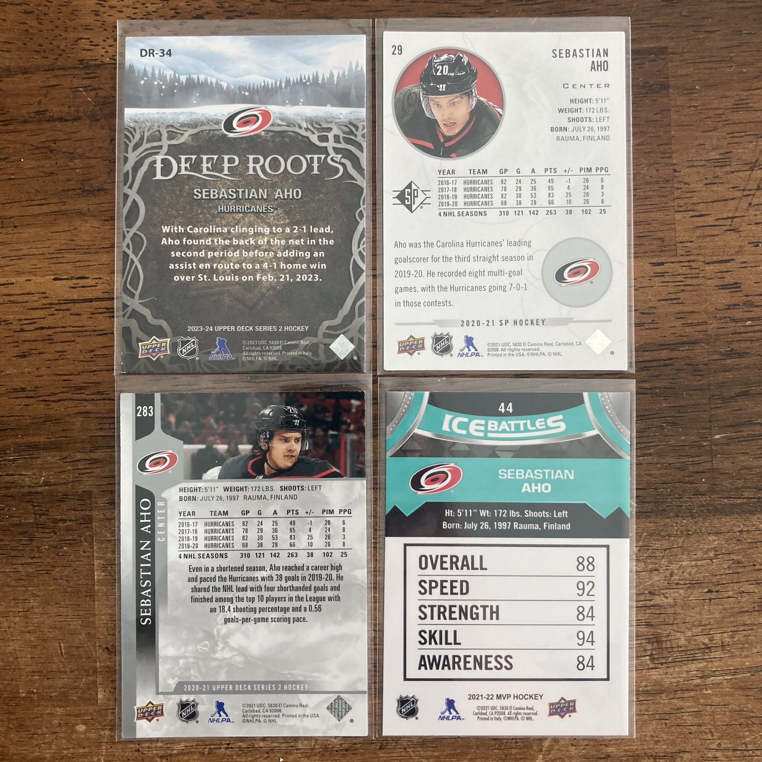Sebastian Aho Lot w/Deep Roots Insert, Pack of 4 Hockey Cards (inv2)