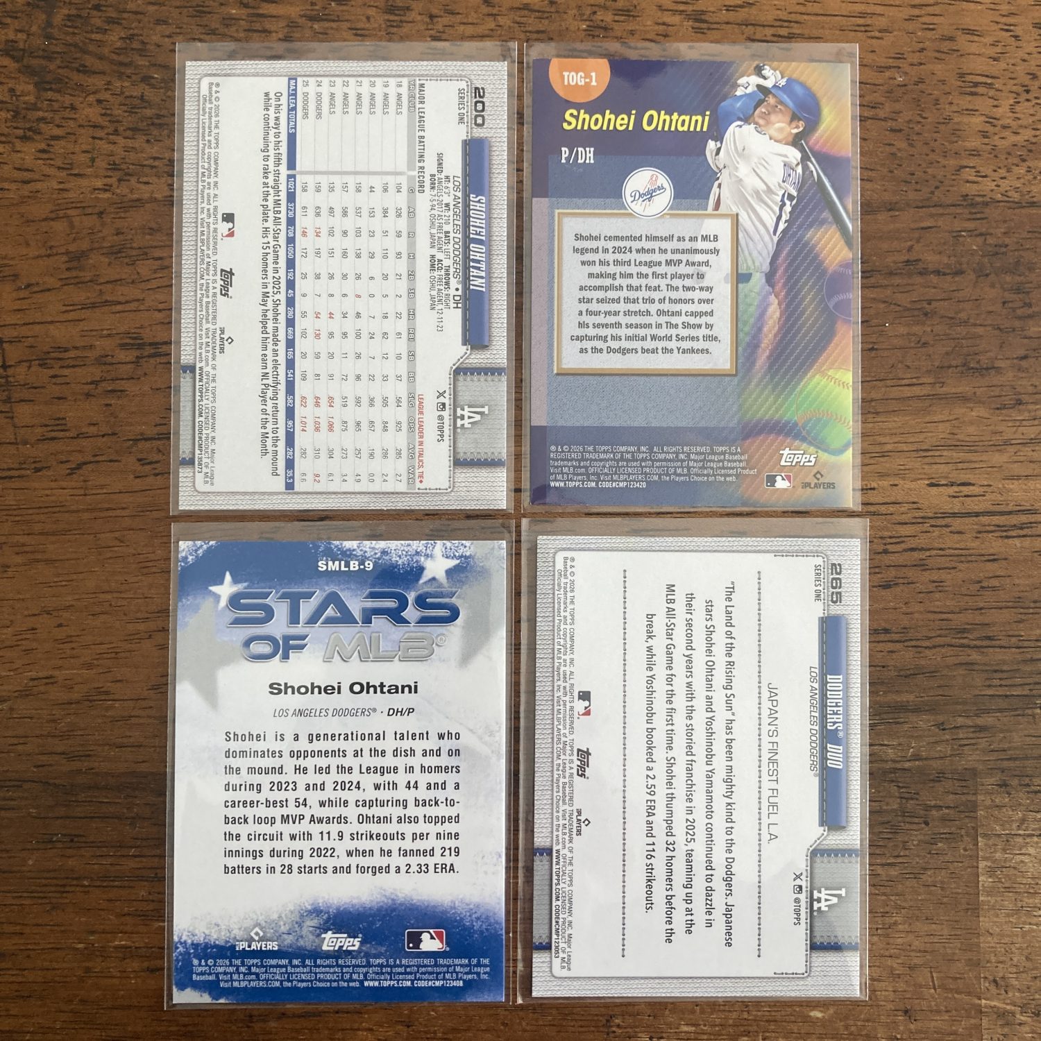 Curated pack of four different Shohei Ohtani baseball cards from 2026 Topps including an SP Easter Holiday Green Foil parallel card. Nice little instant collection bundle of cards for a baseball fan! You will receive all of the exact cards pictured. Each card will be in a penny sleeve and top loader and they will come in a small pack (team bag) with cover graphic as pictured. Will be shipped very well protected!
