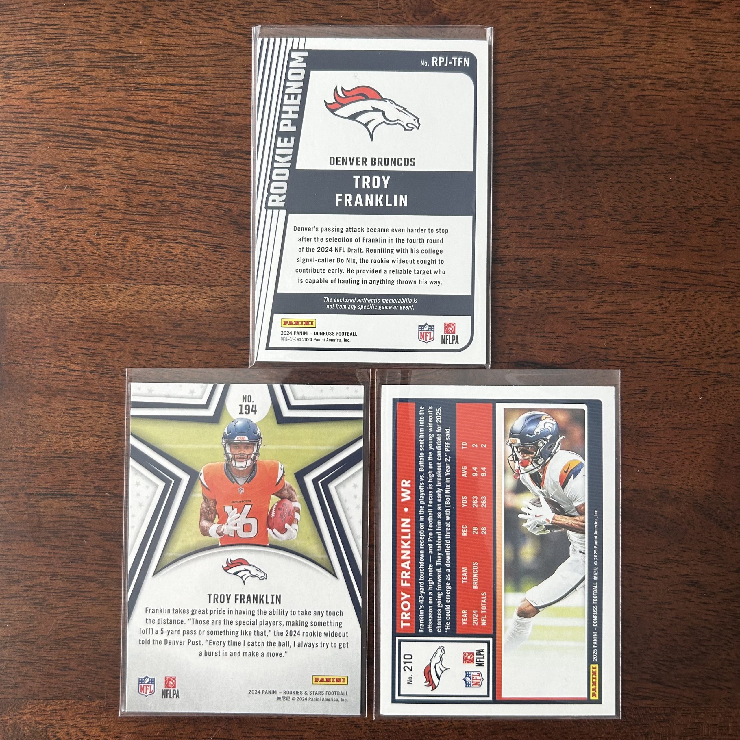 Troy Franklin Pack w/Mem Patch Rookie, Lot of 3 Football Cards (inv1)