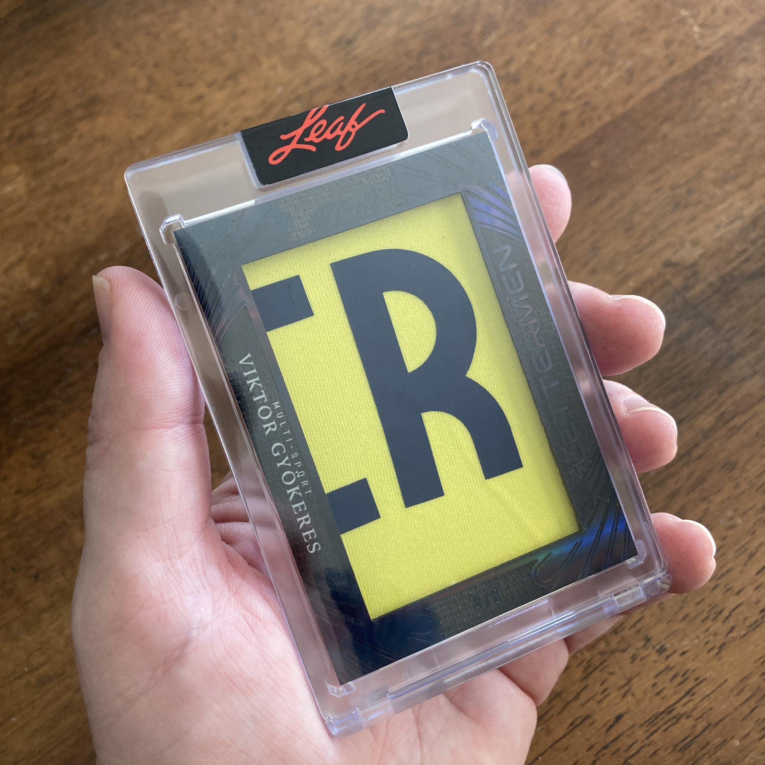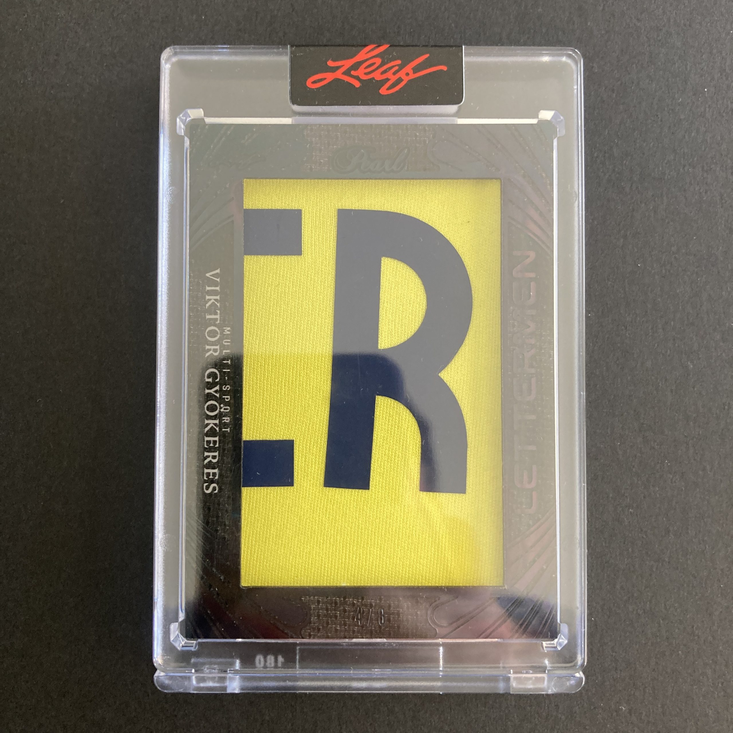 Tags: arsenal, game used, game-worn, insert, jersey, jumbo, leaf pearl, lettermen, mem, memorabilia, multi-sport, nameplate, patch, relic, single, Soccer, sp, ssp, super short print, swatch, sweden, swedish, viktor gyokeres, yellow
