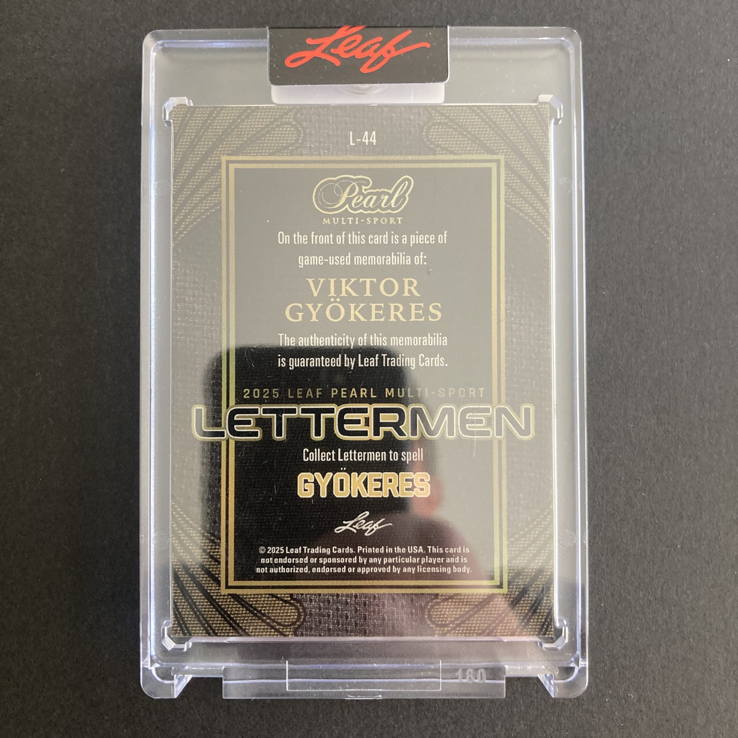 Viktor Gyokeres 2025 Leaf Pearl SSP /8 Lettermen Game-Used Jumbo Nameplate #L-44